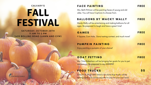 The purpose of Calvary Baptist Church is to Glorify God through Christ-exalting worship as we Grow together as the body of Christ while equipping believers to Go with the gospel to all people.